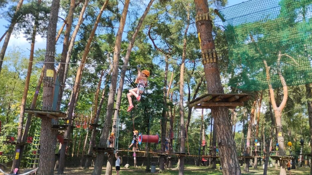 park linowy „Podniebny Cyrk” - to aż 1240 m długości podzielone na 9 tras o różnych stopniach trudności i 150 przeszkód